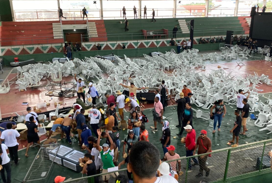 Manifestantes invadem ginásio, entram em confronto com seguranças e impedem realização de debate promovido pela Semas; prefeito Pedrinho da Balsa foi hostilizado. ...