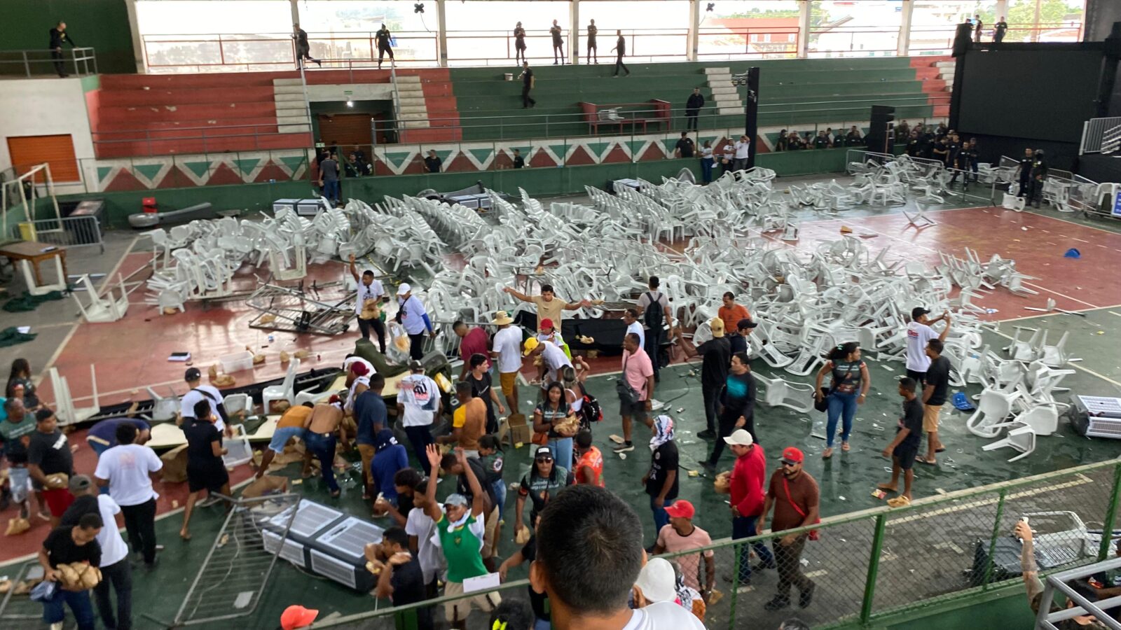 Manifestantes invadem ginásio, entram em confronto com seguranças e impedem realização de debate promovido pela Semas; ...