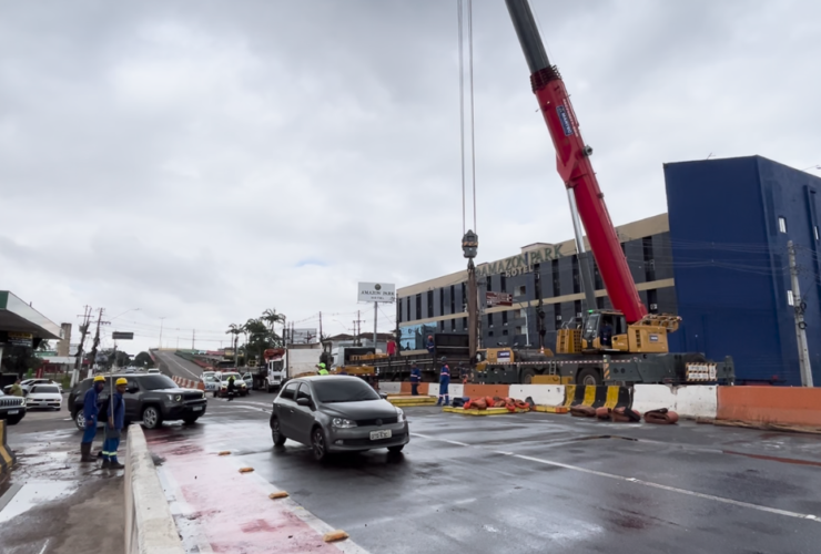 O trânsito na avenida Júlio César, em Belém, foi liberado após a retirada da passarela sobre o canal ...
