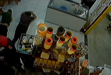 Imagens de câmeras de segurança registraram o momento em que homens armados invadiram uma conveniência no bairro da ...