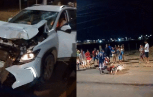Duas pessoas morreram e três crianças ficaram feridas em um grave acidente na noite de sexta-feira (29), em Canaã dos Carajás, sudeste do Pará. A colisão envolveu um carro de passeio e duas motocicletas ocupadas por membros da mesma família. Imagens de câmeras de segurança mostram o momento em que as motos reduzem a velocidade … Continue lendo Acidente em Canaã dos Carajás deixa duas pessoas mortas e três crianças feridas