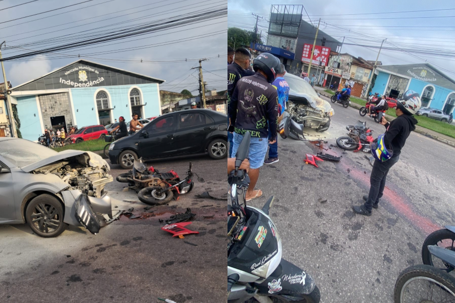De acordo com informações preliminares, a colisão envolveu um carro de passeio e uma motocicleta. Imagens que circulam nas redes sociais mostram a parte frontal do automóvel destruída, enquanto a motocicleta aparece caída no chão após o impacto.