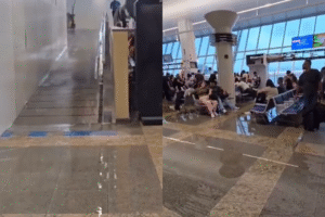 Passageiros registraram um alagamento no Aeroporto Internacional de Belém na noite de sexta-feira (15), a menos de 90 dias da abertura da 30ª Conferência das Nações Unidas sobre Mudanças Climáticas (COP30). O vídeo que circula nas redes sociais, mostra a água caindo do teto e se acumulando no saguão de embarque, onde pessoas levantaram pés … Continue lendo Aeroporto de Belém registra alagamento a menos de três meses da COP30
