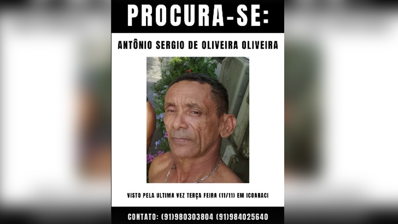 Quem tiver informações sobre o paradeiro de Antônio Sérgio pode entrar em contato pelos números pelos números 91 98030-3804 ou 98402-5640 ou enviar mensagens diretas nas redes sociais do influencer.