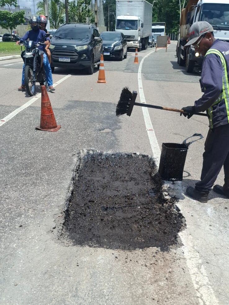 A Secretaria Municipal de Zeladoria e Conservação Urbana (Sezel) encaminhou imagens à reportagem e afirmou, em nota, que o serviço foi executado nesta terça-feira (10) por equipes da Operação Tapa-Buraco, com o objetivo de restabelecer as condições de trafegabilidade e segurança no trecho.
