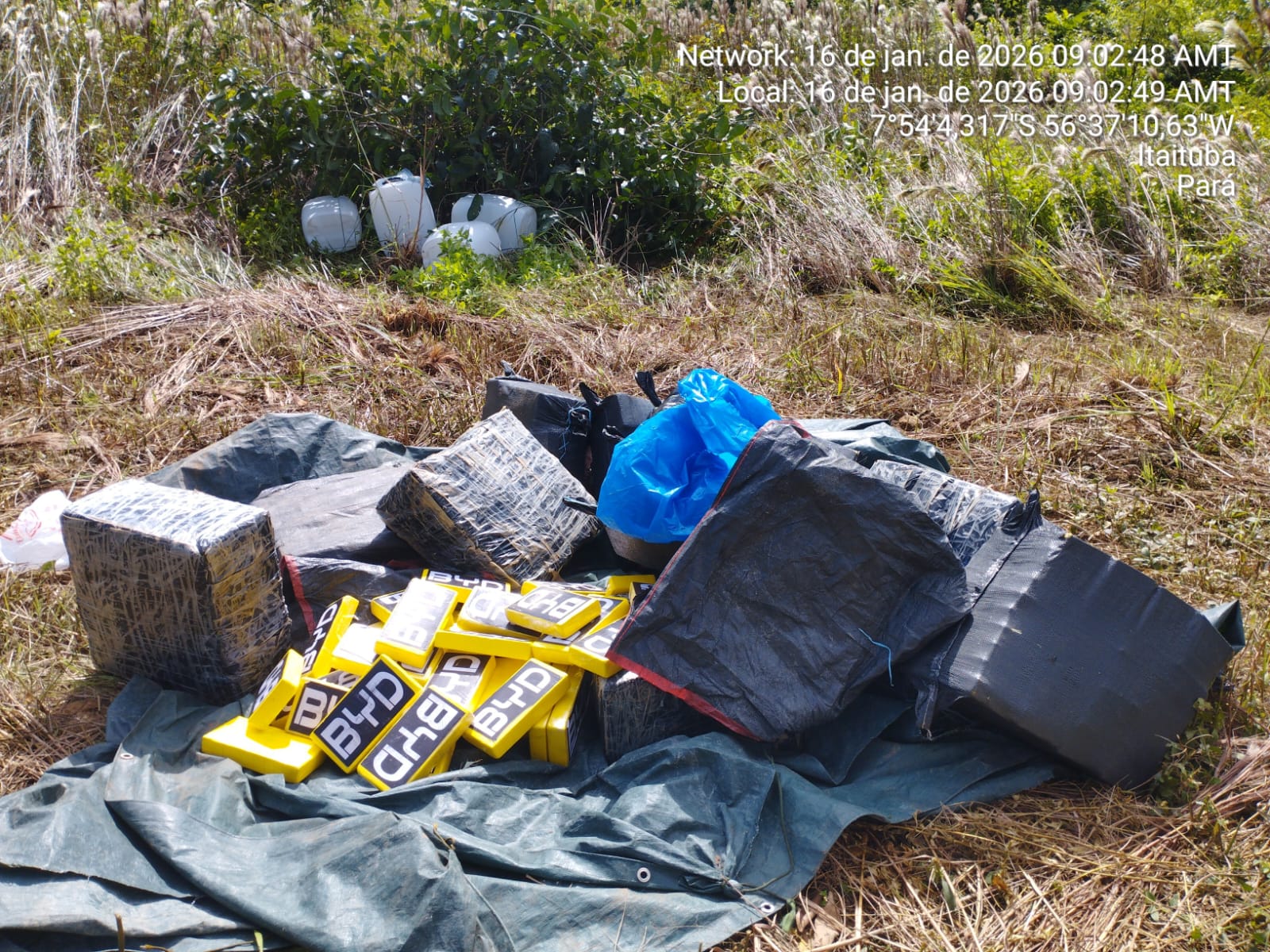 Uma ação integrada das forças de segurança apreendeu cerca de 500 quilos de cloridrato de c0caín4 nesta sexta-feira (16), em uma área de mata na zona rural do município de Itaituba, no sudoeste do Pará. pic.twitter.com/AYOvcYv9jb