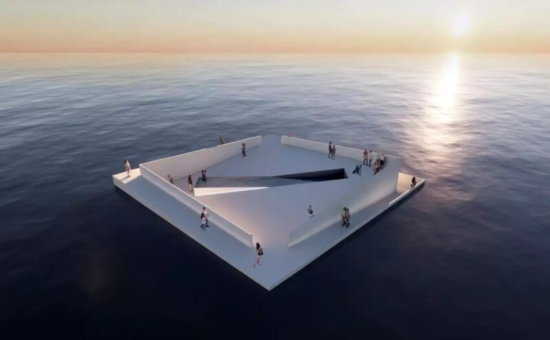 Um dos diferenciais do projeto é a tecnologia inspirada em submarinos e no princípio de Arquimedes, que permite que a plataforma se ajuste às variações do nível da água. A estrutura pode reter ou liberar água, recalibrando-se de acordo com as flutuações — uma experiência física que remete ao aumento do nível dos oceanos.