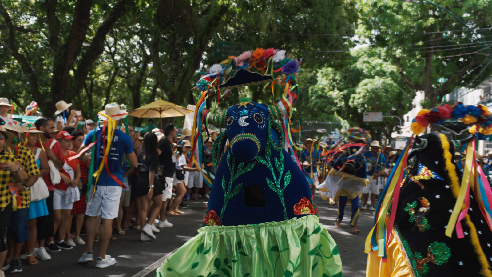 Entre os destaques visuais estão o Boi Pavulagem sendo conduzido pelo público, o Batalhão da Estrela em movimento e os elementos que dão identidade à festa: flores, rosários, mastros e trabalhos manuais, todos apresentados como parte essencial do espetáculo.