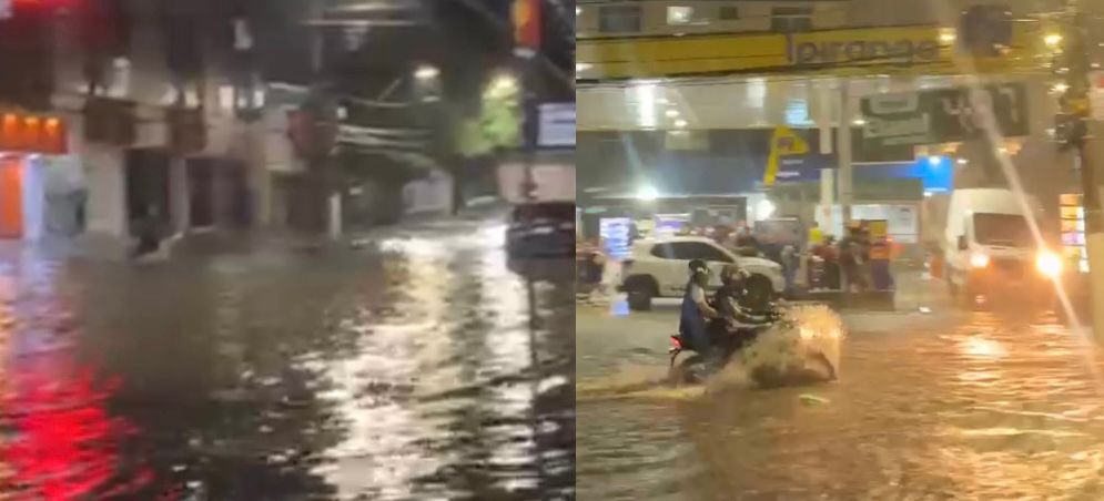 Os pontos mais afetados incluem áreas centrais e vias de grande fluxo. Em alguns trechos, carros ficaram parcialmente submersos e pedestres precisaram se arriscar em meio à água.