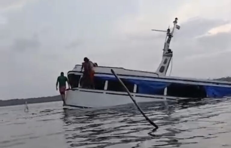 O naufrágio da embarcação “Luiz Guilherme” resultou na morte de duas pessoas na tarde da última sexta-feira (3), na Ilha do Marajó. O acidente ocorreu nas proximidades da comunidade de Olaria, no município de Ponta de Pedras, enquanto o barco se dirigia para Belém em uma rota de transporte de mercadorias. Imagens que circulam pelas … Continue lendo Barco que seguia para Belém afunda e deixa duas pessoas mortas no Marajó