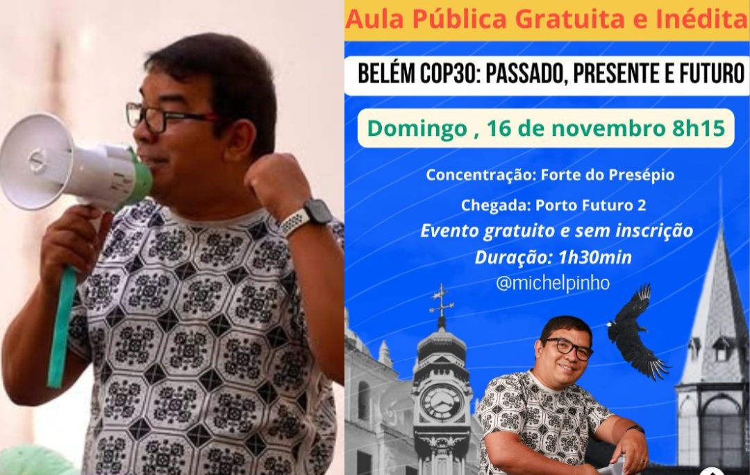 No próximo dia 16, domingo, Belém será palco de mais uma edição das aulas públicas conduzidas pelo historiador Michel Pinho. O encontro intitulado “Belém COP30: Passado, Presente e Futuro” pretende revisitar as transformações da cidade desde a fundação no século XVII até o atual processo de revitalização urbana.