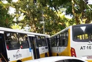 Na tarde desta segunda-feira (12), um acidente envolvendo dois ônibus foi registrado na avenida Serzedelo ...