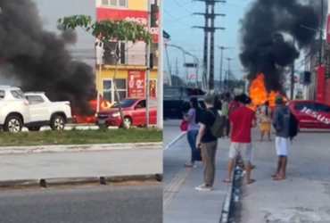 Um carro pegou fogo na manhã desta sexta-feira (9), próximo à rotatória da Mário Covas ...