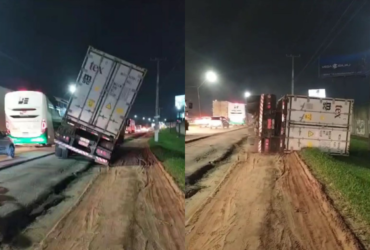 Na noite desta sexta-feira (28), uma carreta tombou ao tentar escapar do congestionamento na BR ...