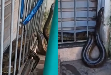 No dia mundial do meio ambiente, uma cobra com 3 metros de comprimento foi encontrada ...