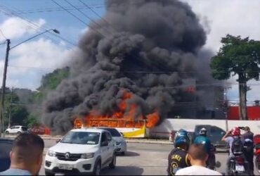 Um ônibus pegou fogo, na manhã desta quarta-feira (17), na Avenida Augusto Montenegro, em Belém. ...