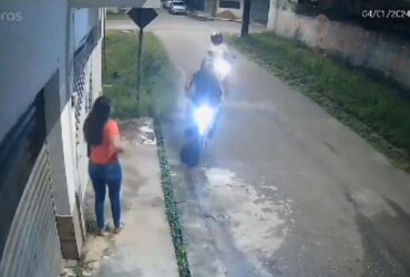 Imagens de câmeras de segurança registraram o momento em que uma mulher é assaltada por ...