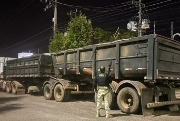 No domingo (5), a Polícia Rodoviária Federal (PRF) apreendeu 40 toneladas de minério sendo transportadas ...