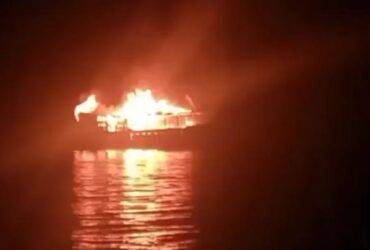 Um barco pegou fogo próximo do porto de Curralinho, na noite do último domingo (08). ...