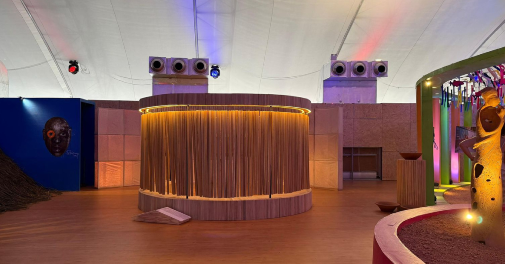 O espaço também abriga o pavilhão de miriti, estrutura já apresentada na Bienal Internacional de Arquitetura, idealizada pela Guá Arquitetura em parceria com o Atelier Miriti Sustentabilidade, do mestre Joel Cordeiro. A instalação apresenta o miriti como tecnologia social e material de vanguarda, ampliando seu uso para além do artesanato tradicional.