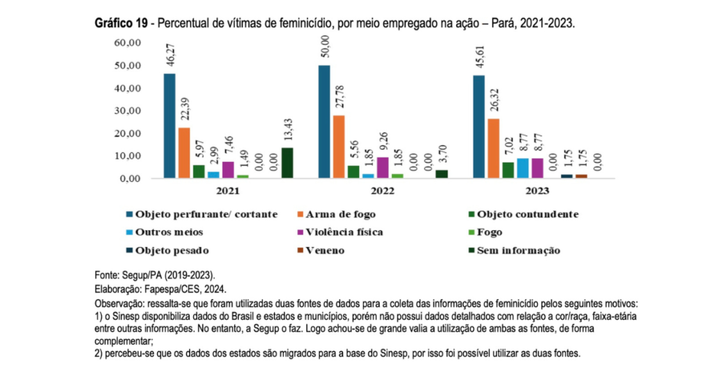 Outro dado alarmante é o local onde os crimes acontecem. Mais da metade dos feminicídios no Pará, entre 2019 e 2023, ocorreram dentro da própria residência da vítima. Esse padrão confirma que, na maioria dos casos, o agressor faz parte do convívio íntimo da mulher, geralmente companheiros ou ex-companheiros.
