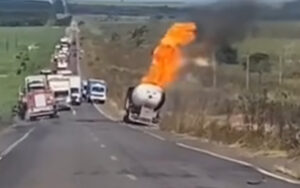 Caminhão carregado com combustível explode e deixa feridos na BR-010