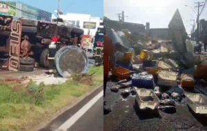 Caminhão carregado de peixe tomba e interdita BR-316 em Castanhal
