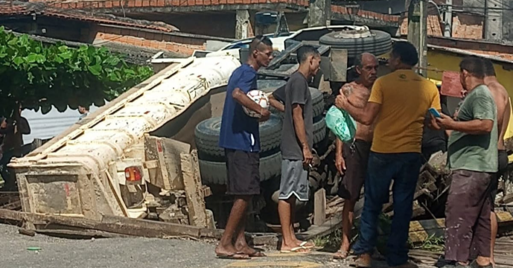 Um caminhão tombou na Avenida Celso Malcher, no bairro da Terra Firme, em Belém, após passar por uma ponte de madeira. O acidente chamou atenção de moradores da área, que já alertavam para as condições precárias da estrutura.