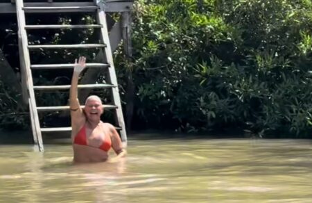 Canoeiros encontram Fafá de Belém tomando banho de rio na Ilha do Combu