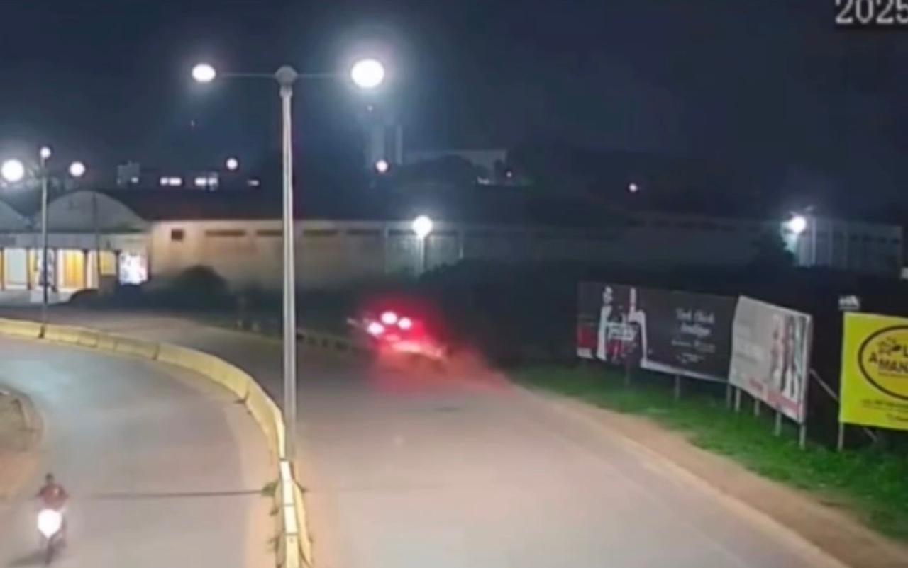 Imagens de câmeras de segurança registraram o momento em que o motorista perdeu o controle da direção e o carro caiu dentro da água. Por sorte, todos sofreram ferimentos leves e não correm risco de morte.
