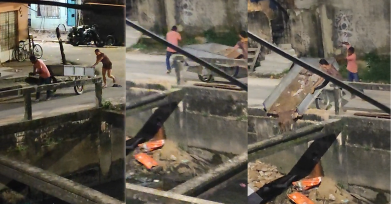 Casal é flagrado descartando entulho no canal da Pirajá, em Belém