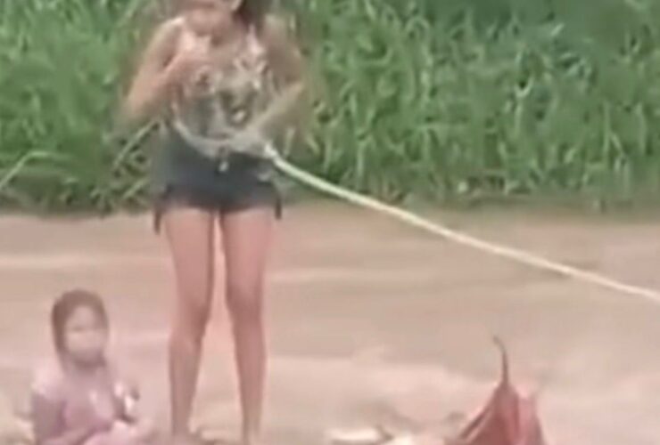 Vídeo: criança é resgatada por vizinha após ficar ilhada em canal durante fortes chuvas na Bahia