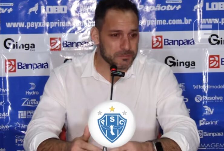 Carlos Frontini chora em coletiva após rebaixamento do Paysandu