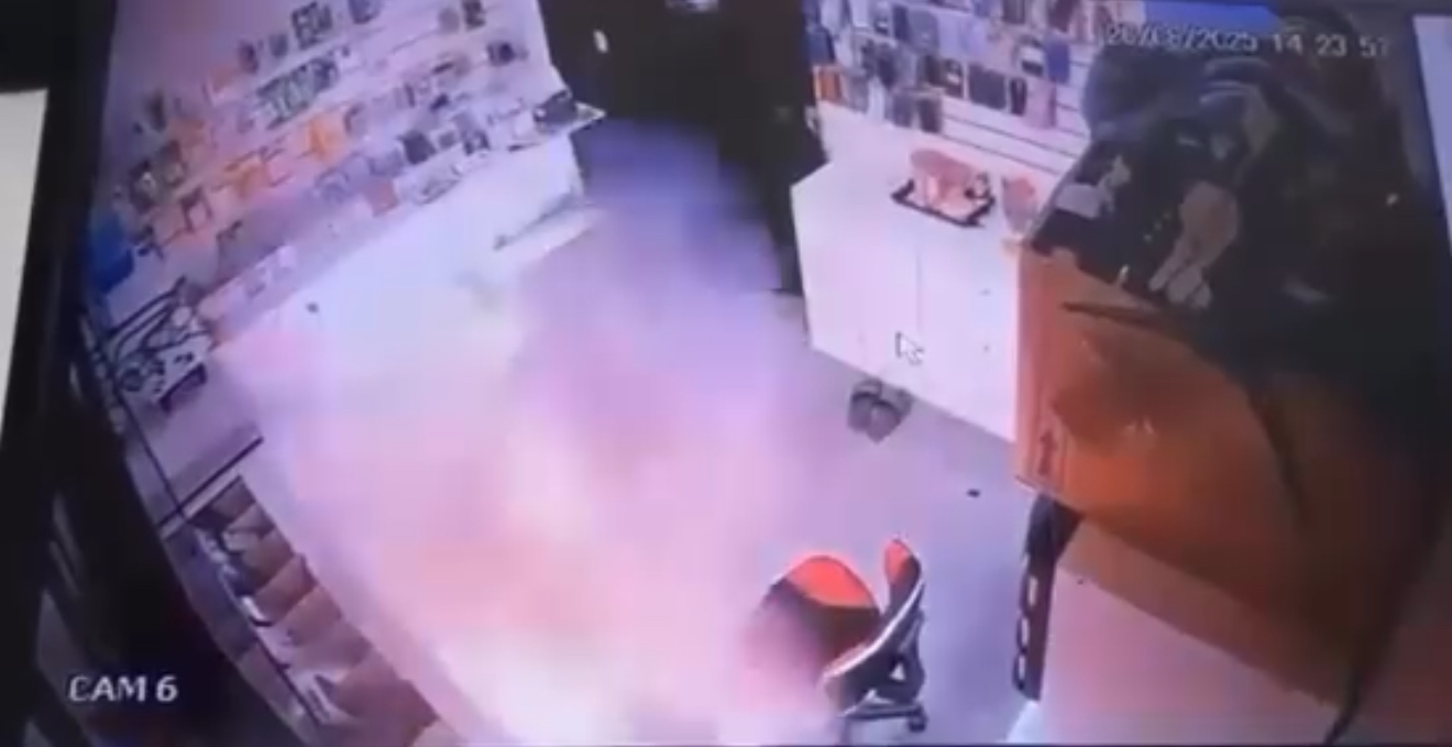 Imagens registradas por câmeras de segurança mostram o dispositivo sendo carregado e, segundos depois, uma nuvem de fumaça sai do celular. Logo em seguida, ele explode.