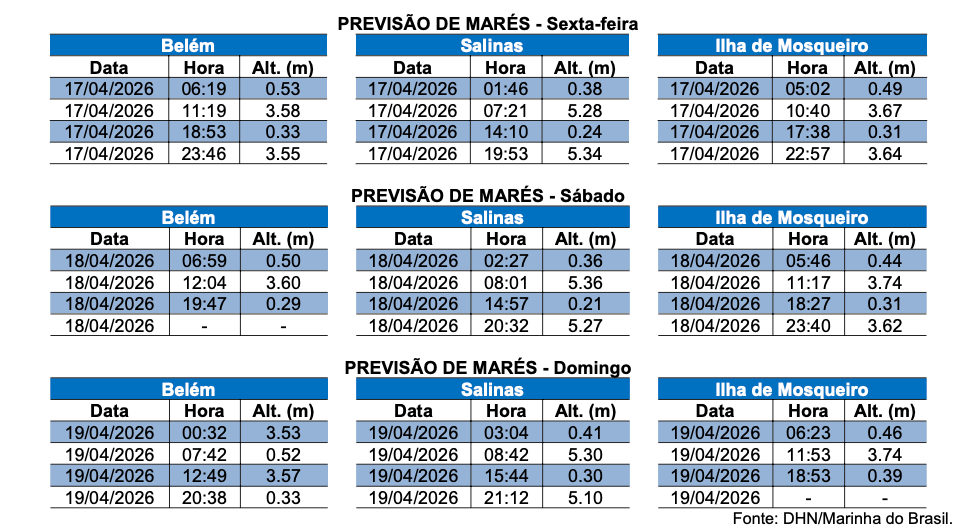 Além das chuvas, o boletim inclui previsão de marés elevadas para Belém, Salinópolis e Mosqueiro, o que pode agravar pontos de alagamento em áreas mais vulneráveis da capital.