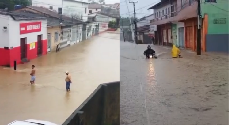 Chuvas intensas e maré alta provocam alagamentos e deixam moradores ilhados em Bragança