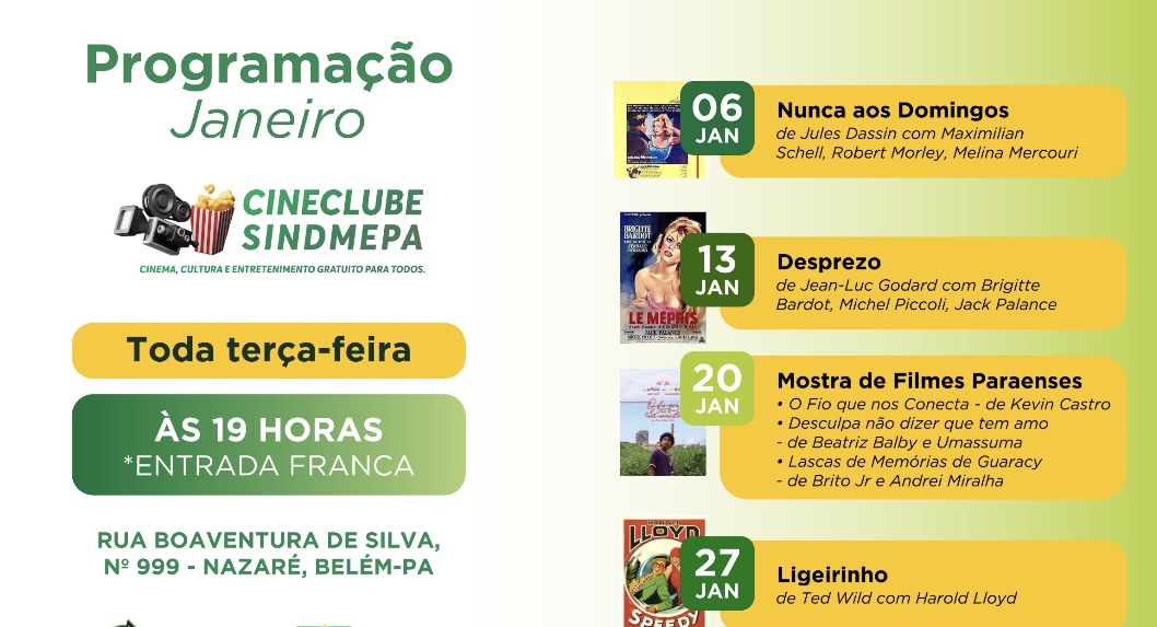 Com essa iniciativa, o Cineclube SINDMEPA reforça seu papel na promoção do acesso à cultura e na valorização do cinema, oferecendo ao público uma programação variada e gratuita durante todo o mês de janeiro.