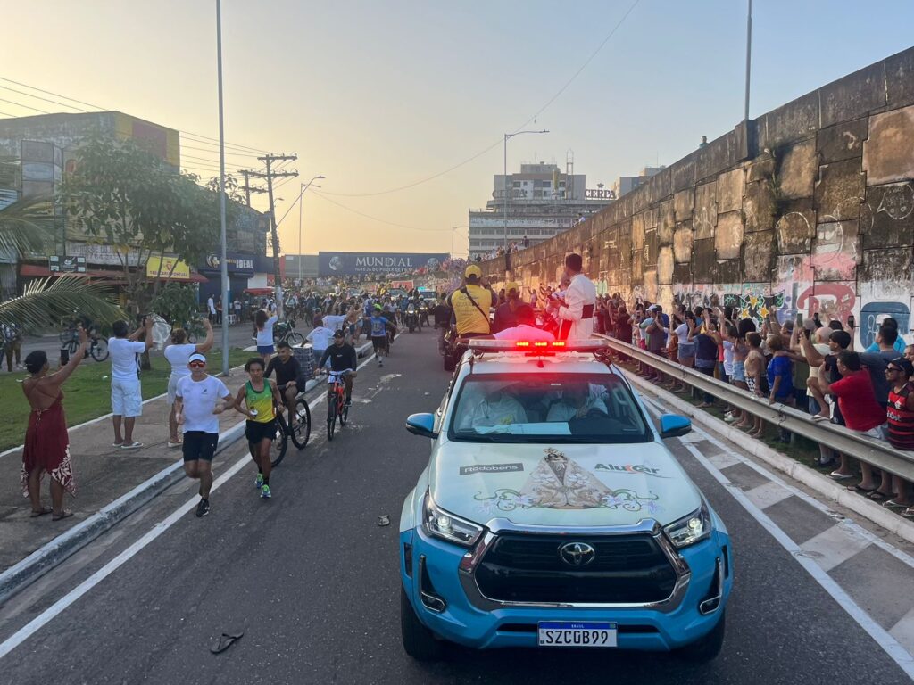 A Imagem Peregrina é acompanhada por muitos ciclistas e corredores, que vão fazer o trajeto até o Trapiche de Icoaraci.
