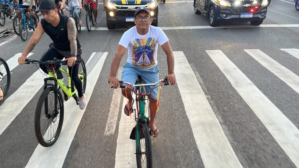 Valmir Rodrigues, de 57 anos, acompanha todos os anos o Traslado até Icoaraci. Este ano é especial: a promessa é pela neta, que nasceu prematura, aos sete meses, e hoje tem 15 anos. Morador do bairro do Bengui, Valmir pede felicidade para a família, para os filhos e que consiga se recuperar, ainda neste ano, de um problema na coluna. Em sua bicicleta, antiga, há várias fitinhas, cada uma em homenagem a alguém. “Essas fitinhas que estão na minha bicicleta são da minha família. Todo ano eu coloco, como uma forma de pedir que Nossa Senhora os proteja e traga saúde a todos”, contou.