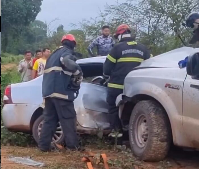 No carro estavam o condutor e um passageiro. O motorista conseguiu deixar o veículo com o apoio de moradores da área, mas o passageiro ficou preso dentro das ferragens após a batida. Já o condutor da caminhonete não sofreu ferimentos.