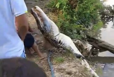 Moradores de uma comunidade capturaram e mataram um jacaré-açu de mais de 6 metros de comprimento, em um rio na PA-252, entre os municípios de Mãe do Rio e Concórdia do Pará, no nordeste do Estado. Testemunhas relataram que a população capturou o animal para comercializar a carne e evitar que a espécie matasse os habitantes. Vídeos compartilhados na … Continue lendo Com mais de 6 metros de comprimento, jacaré-açu é morto e capturado em Mãe do Rio