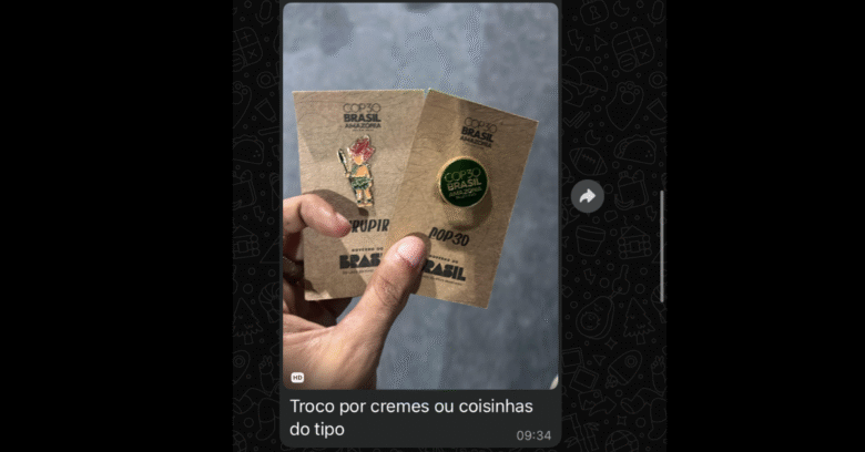 Os primeiros dias da COP30, em Belém, revelaram um fenômeno curioso entre delegados, voluntários, jornalistas e visitantes: a verdadeira corrida pelos brindes da conferência. O que começou como uma troca amistosa de lembranças entre países rapidamente se transformou em uma febre, especialmente pelos tradicionais pins distribuídos nos estandes das delegações. Valia quase tudo para garantir … Continue lendo Da troca amigável à venda clandestina: procura por brindes na COP30 vira comércio secreto entre participantes