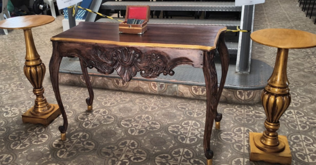 Ao todo, são 14 peças expostas, entre móveis restaurados e acessórios. Durante a programação, o público também poderá acompanhar uma demonstração ao vivo do processo de restauração, permitindo conhecer de perto as técnicas utilizadas na revitalização da madeira.