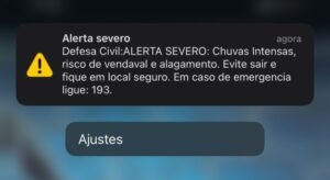 Moradores de Belém receberam, por volta das 17h40 desta quarta-feira, 24, um alerta severo da Defesa Civil informando sobre a ocorrência de chuvas intensas, com risco de vendaval e alagamentos na capital paraense. A mensagem foi enviada diretamente aos celulares e orienta a população a evitar sair de casa e permanecer em local seguro. Em … Continue lendo Defesa Civil emite alerta severo para Belém devido a chuvas intensas