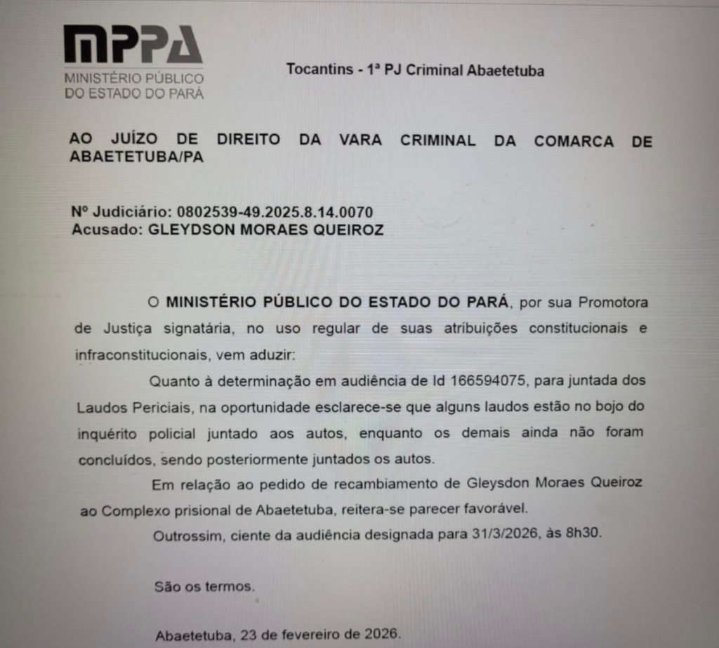 A audiência de instrução do caso Luizinho Costa, realizada no último dia 31 de março em Abaetetuba, foi marcada por estratégias de defesa que interromperam o andamento processual. O réu confesso Gleydson Moraes Queiroz manteve-se em silêncio e seus advogados abandonaram a causa, forçando o Judiciário a estabelecer um prazo para a nomeação de novos defensores.
