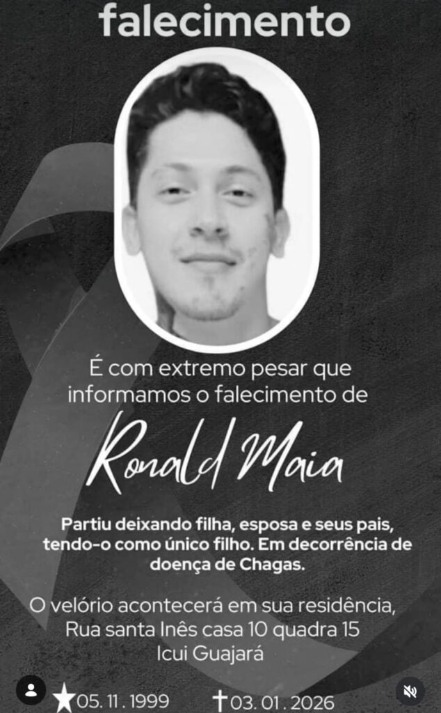 Ronald Maia, de 26 anos, morreu após apresentar complicações compatíveis com Doença de Chagas. Segundo a família, ele teria consumido açaí adquirido em um ponto de venda próximo à empresa onde trabalhava, o local se chama “Açaí do carequinha”, localizado no bairro do coqueiro e foi interditado dias depois.