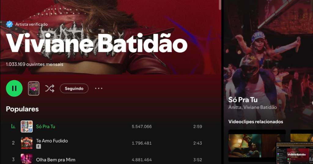 A parceria com Anitta não ficou apenas no palco: a música “Só Pra Tu” já figura entre os maiores sucessos de Viviane nas plataformas, ajudando a ampliar o alcance da artista para além do Norte do país.