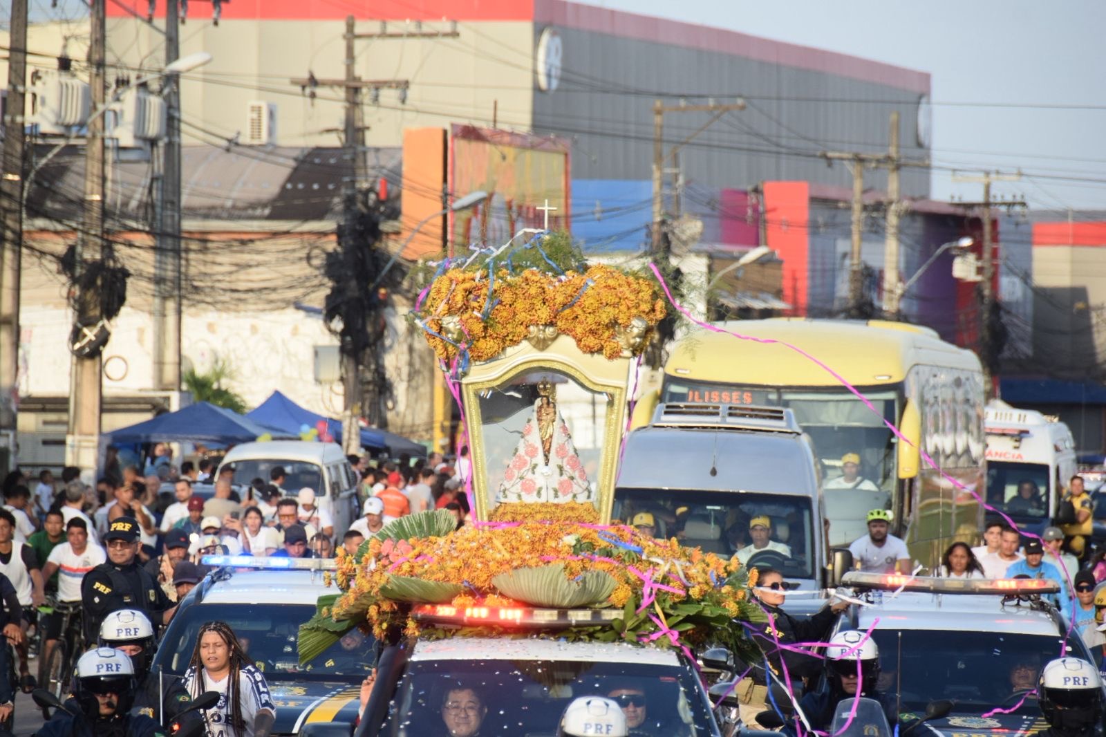 A saída ocorreu às 8h da manhã após uma missa missa na Basílica Santuário de Nazaré, conduzida por Dom Paulo Andreolli, bispo auxiliar da Arquidiocese de Belém. Toda a operação do traslado contou com o apoio direto da Polícia Rodoviária Federal (PRF), com apoio da Diretoria da Festa de Nazaré(DFN), Guarda de Nazaré, DETRAN, Batalhão Águia da PM, Guarda Municipal de Belém (GMB), Guarda Municipal de Ananindeua (GMA), Guarda Civil de Marituba (GCM), Polícia Militar (PM), SEGBEL, SEMUTRAN de Ananindeua, SETRAN de Marituba e Corpo de Bombeiros.