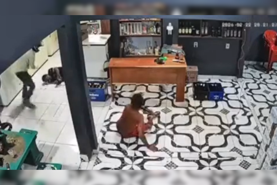 De acordo com as imagens, a vítima estava atrás do balcão atendendo um cliente, enquanto outras pessoas permaneciam no local. Em determinado momento, um homem usando capacete entrou no estabelecimento, se aproximou e efetuou vários disparos contra o empresário.