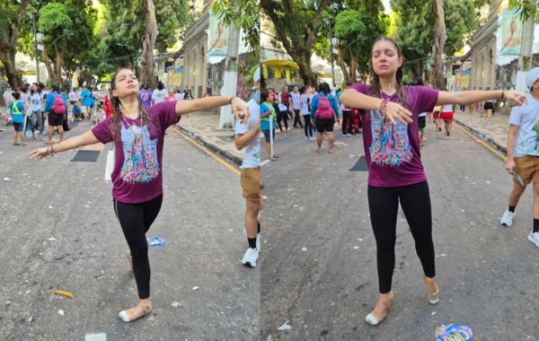 Enquanto avança pelo caminho percorrido por Nossa Senhora de Nazaré na Berlinda, Giovanna se emociona e, com lágrimas que escorrem pelo rosto, a bailarina segue na ponta dos pés em agradecimento pela nova jornada que se inicia no próximo mês, quando embarca para a Europa.
